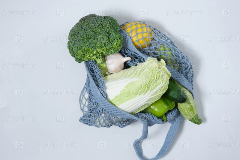 Свежие овощи в экологически чистой многоразовой хозяйственной сумке Покупки продуктов с эко-сумкой. Концепция устойчивого и экологически чистого образа жизни