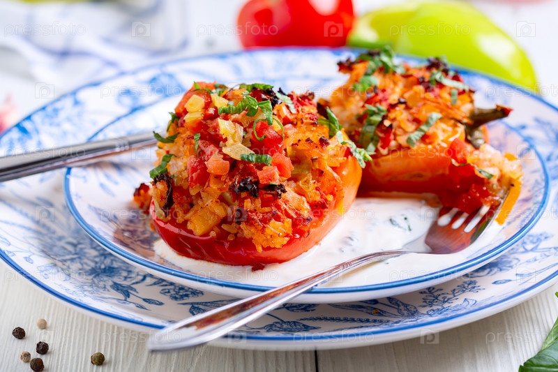 Фаршированный красный перец с зеленью