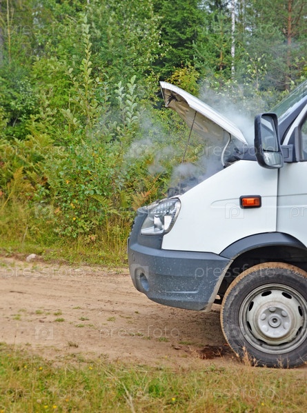 Фрагмент неисправного автомобиля. Дым из-под капота