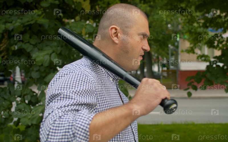 Закрыть. Преступник ходит по городу с бейсбольной битой в руках. Следить за выстрелом