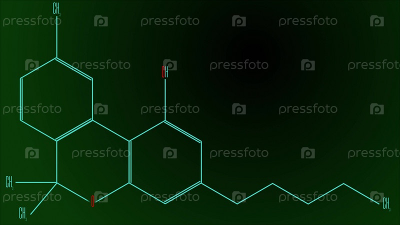 Структурная формула молекулы каннабинола. Черный и зеленый градиент фона