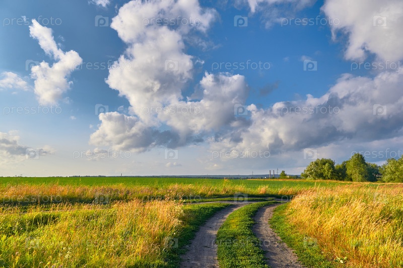 Дорога в поле, летний пейзаж