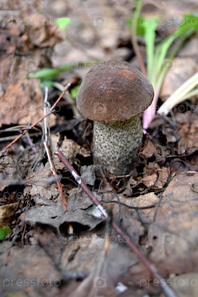 Съедобный гриб осенью среди сухой листвы