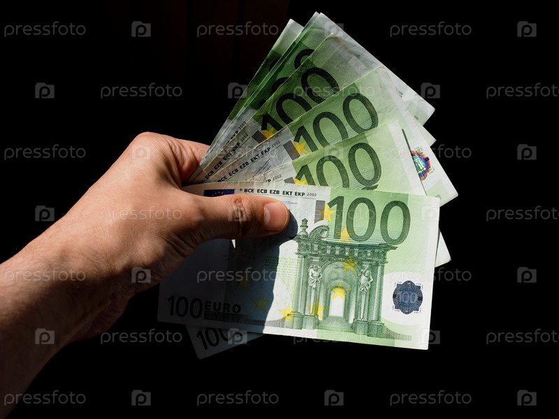 Рука держит и дает деньги банкноты евро (евро), валюта Европейского союза