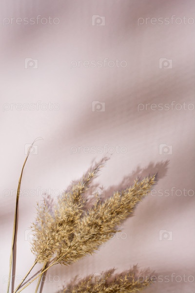 Пампасная трава и тени на нейтральном пастельном фоне. Фон для надписей и историй