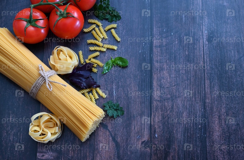 Различные макароны. Концепция приготовления пищи. Вид сверху