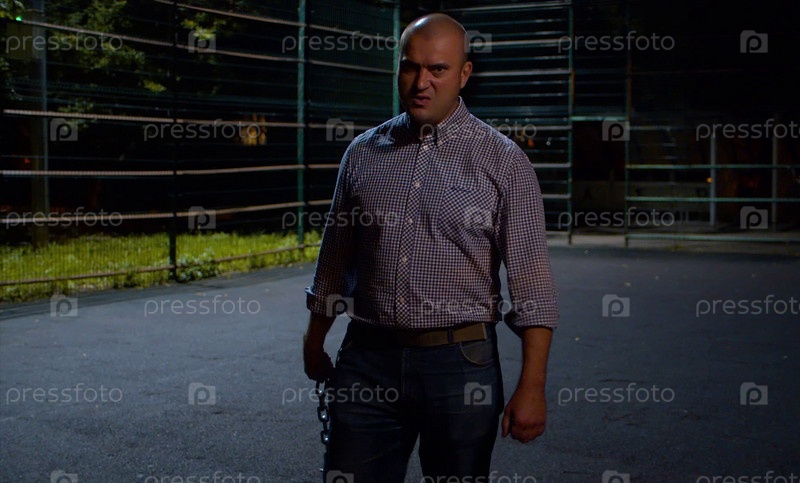 Злой головорез с цепью в руке. Уголовная концепция