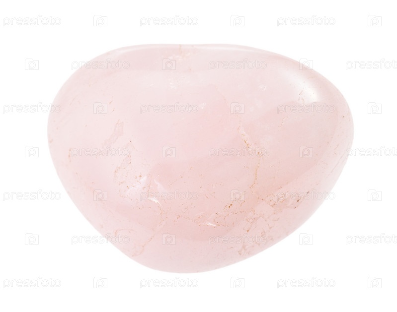 Упал драгоценный камень розовый кварц, изолированные на белом фоне