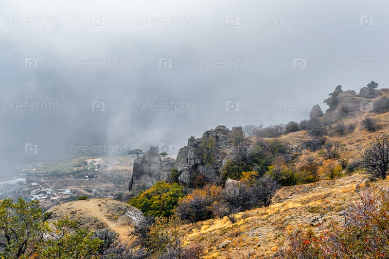 Долина привидений в горах крыма в осенний день