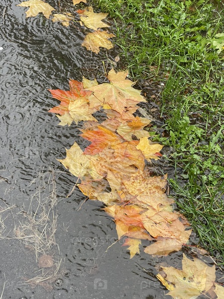 Наступила осень, пошел дождь и с дерева начали падать желтые кленовые листья