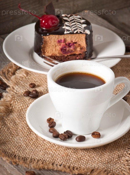 Сладкий кекс с вишней и чашечка кофе
