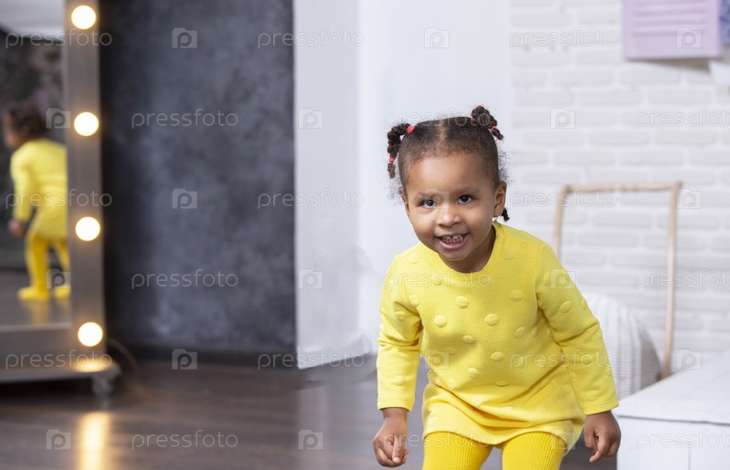 Маленькая афроамериканка играет дома