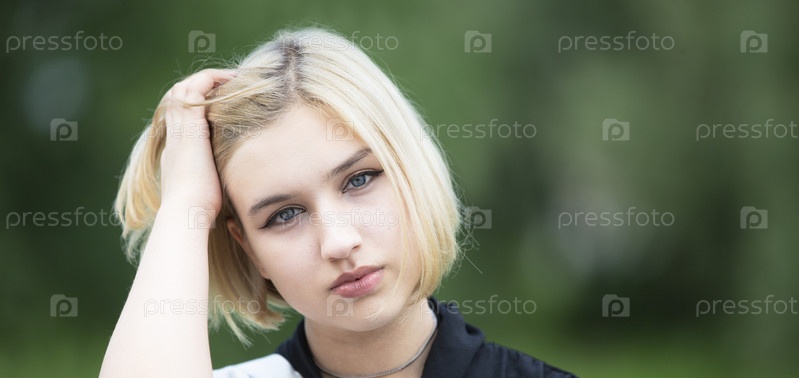 Светлое лицо на зеленом фоне. Семнадцатилетняя девочка