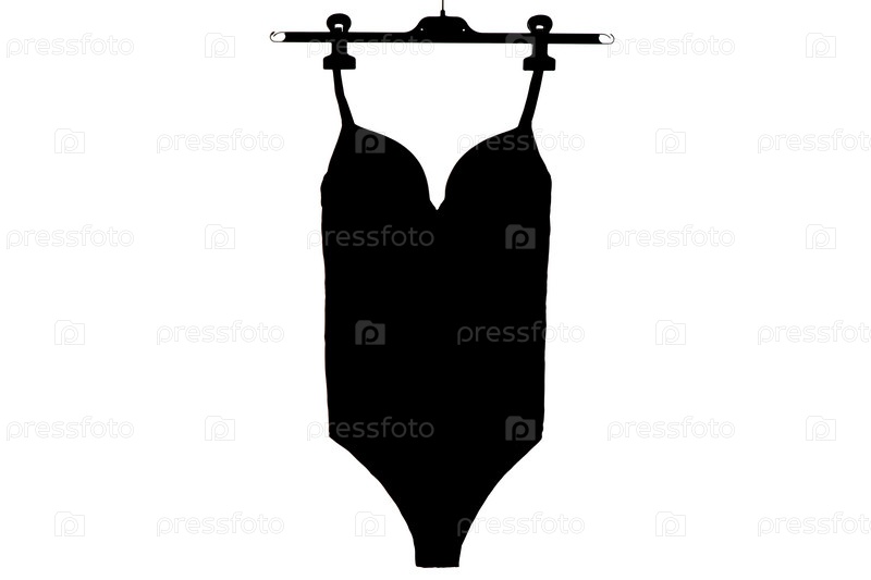 Силуэт тела нижнего белья на вешалке, снятой на белом фоне. Силуэт нижнего белья боди на вешалке на белом фоне