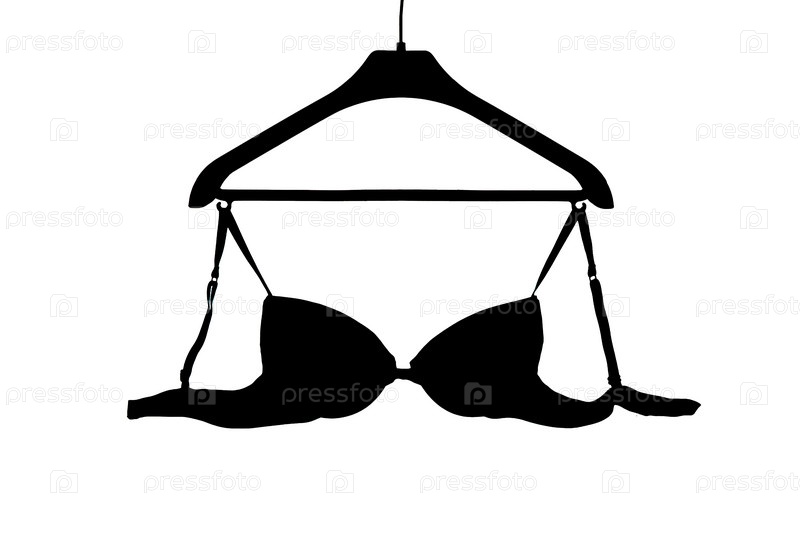 Силуэт бюстгальтера нижнего белья на вешалке на белом фоне