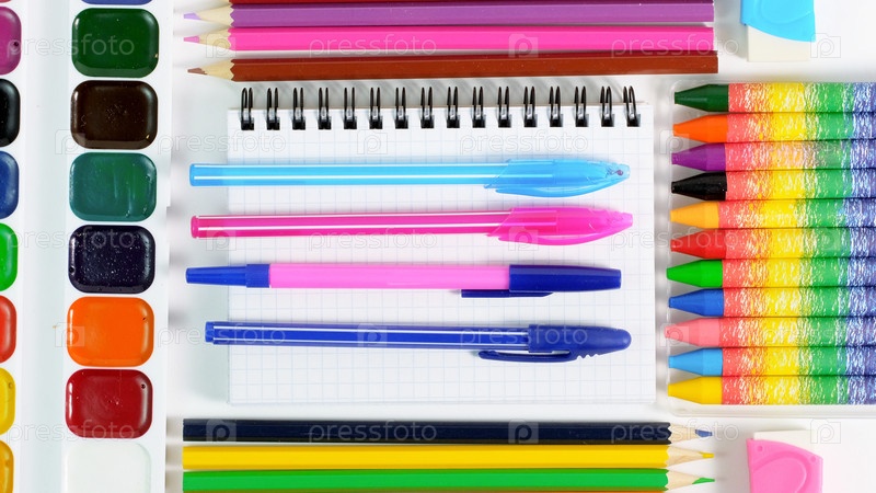 Красочные школьные принадлежности. Снова в школу Концепция образования