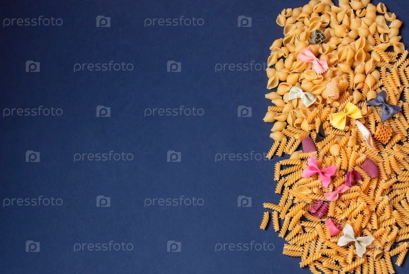 Граница из различных видов сырых макарон. Просмотр с копией пространства