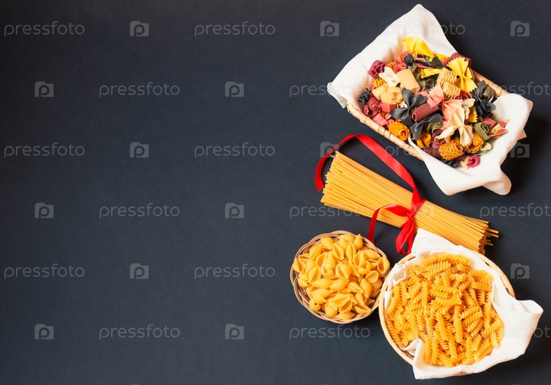 Граница из различных видов сырых макарон. Просмотр с копией пространства