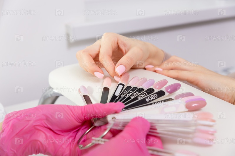 Профессиональный маникюр показывает красочный лак для ногтей, чтобы проверить результат отделки