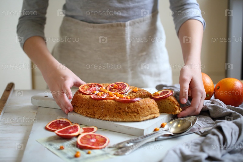 Девочка готовит апельсиновый пирог