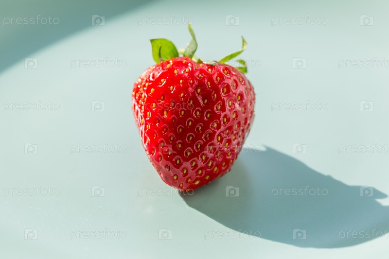 Одна красная клубника на зеленой тарелке. Концепция здорового образа жизни