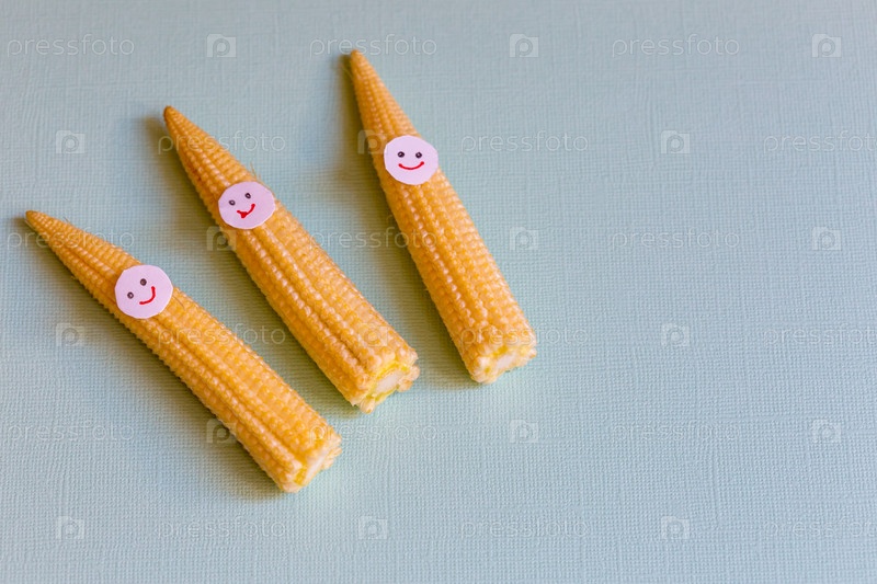 Детская кукуруза с забавными лицами. Здоровая органическая пища