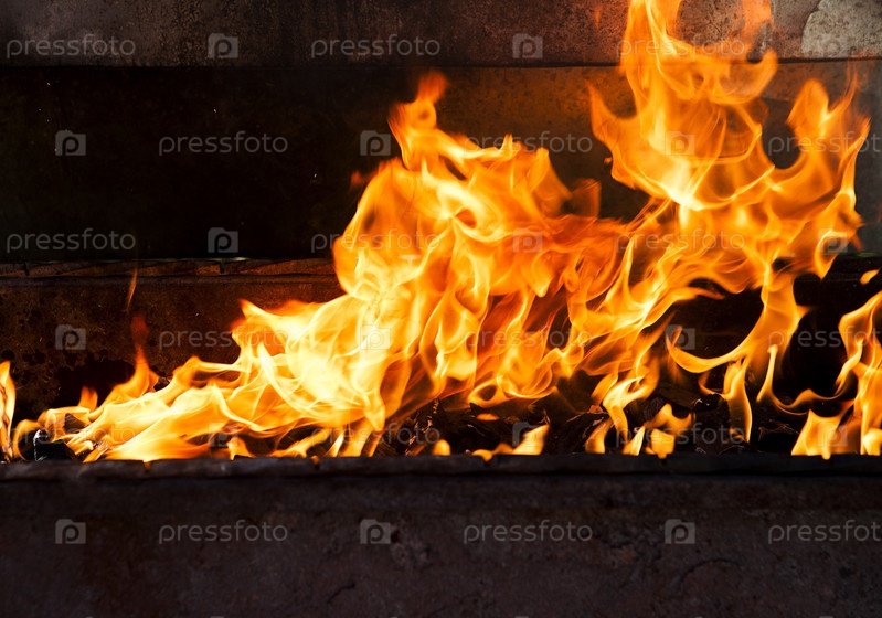 Огонь горит в мангале