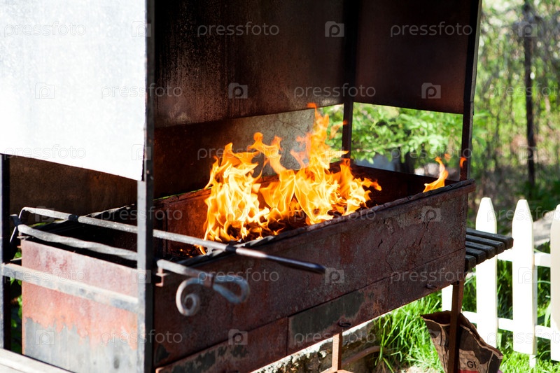 Огонь горит в мангале