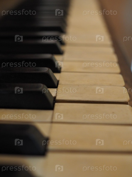 Деталь клавиш клавиатуры фортепиано на винтажном инструменте