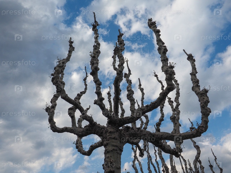 Дерево без листьев на фоне голубого неба