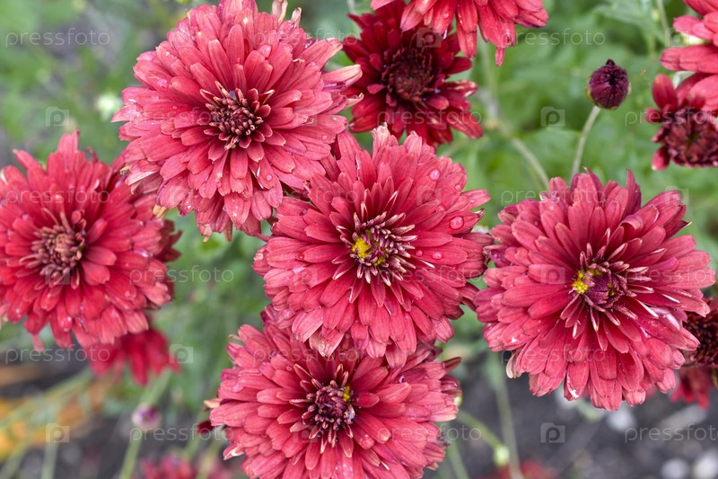 Крупные красные цветы хризантемы крупным планом. Красивые хризантемы в саду летом
