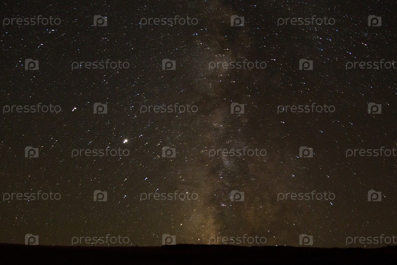 Млечный Путь в ясную летнюю ночь. Вид с плато Бермамыт. Карачаево-Черкесская Республика, Россия