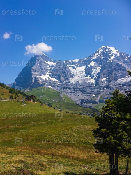 Альпийский пейзаж с видом на северную стену пика Эйгер, Гриндельвальд, Бернские Альпы, Швейцария