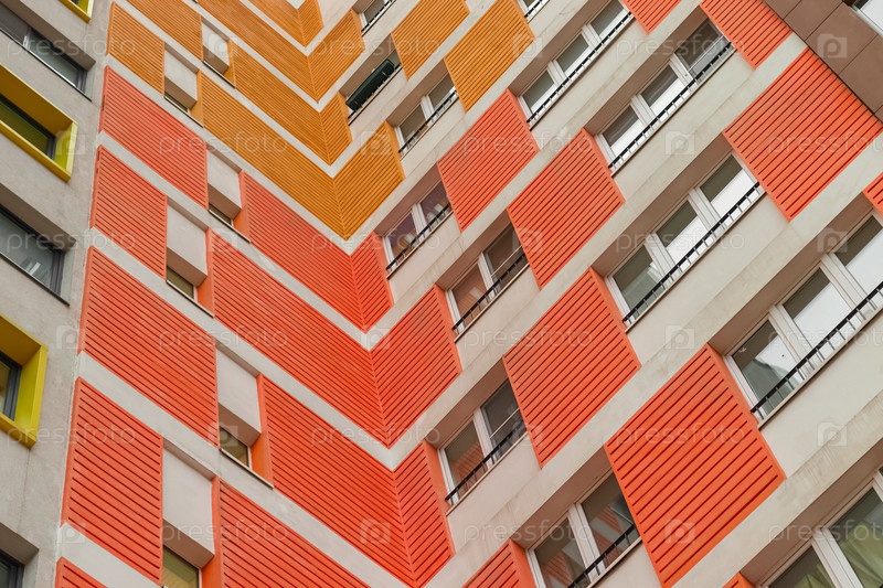 Яркий фасад современного многоквартирного дома, жилой комплекс, Москва, Россия