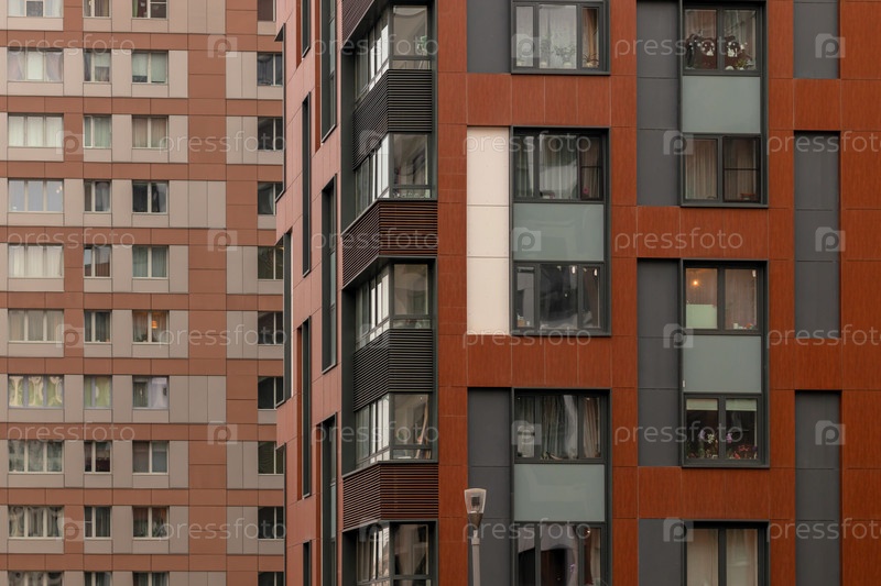 Яркий фасад современного многоквартирного дома, жилой комплекс, Москва, Россия