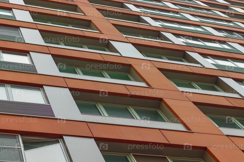 Яркий фасад современного многоквартирного дома, жилой комплекс, Москва, Россия