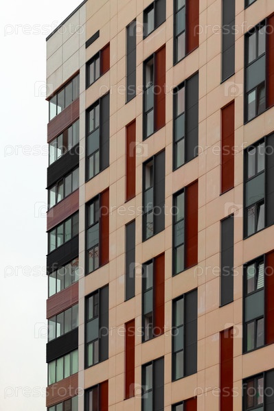 Яркий фасад современного многоквартирного дома, жилой комплекс, Москва, Россия