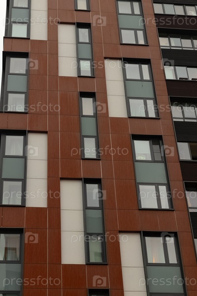 Яркий фасад современного многоквартирного дома, жилой комплекс, Москва, Россия