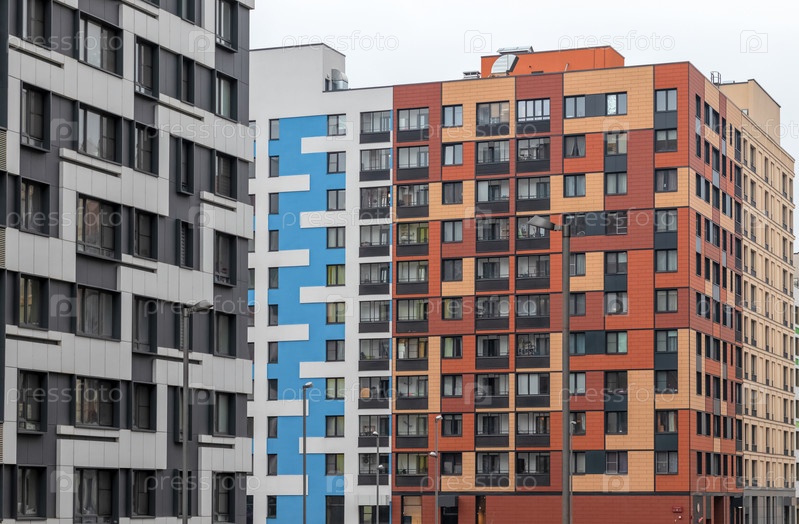 Яркий фасад современного многоквартирного дома, жилой комплекс, Москва, Россия
