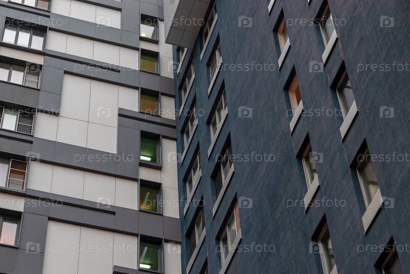 Яркий фасад современного многоквартирного дома, жилой комплекс, Москва, Россия