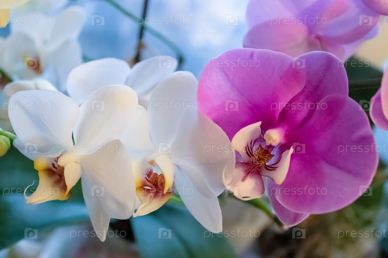 Белый и сиреневый цветок орхидеи фаленопсис. Крупным планом