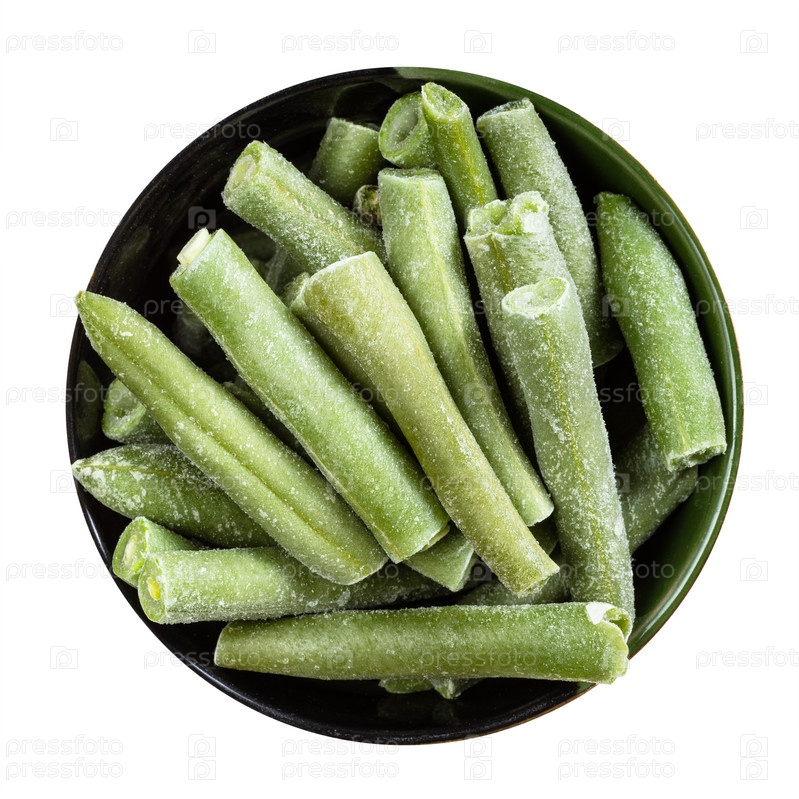 Вид сверху на замороженную зеленую фасоль в круглой миске