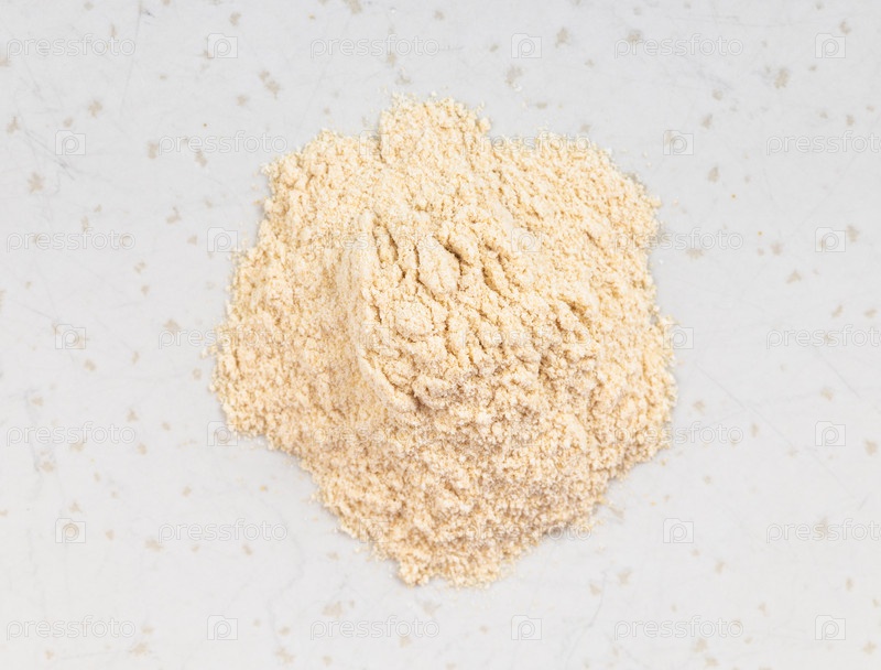Куча порошка яблочного пектина крупным планом на сером