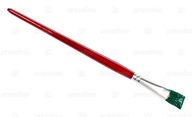 Плоская кисть с зеленым кончиком и коричневой ручкой