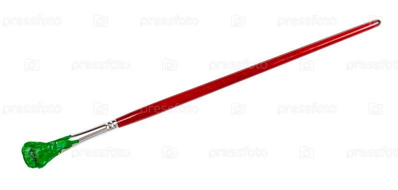 Узкая кисть с зеленым кончиком в пятне