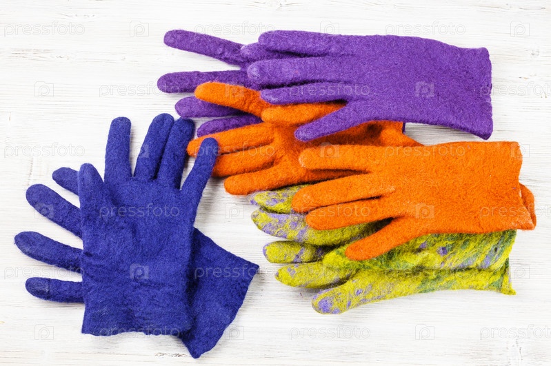 Разноцветные шерстяные валяные перчатки ручной работы