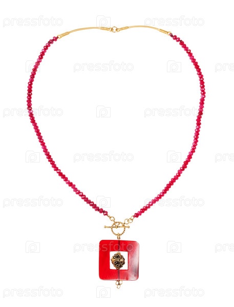 Колье из бусин красного агата с квадратной подвеской