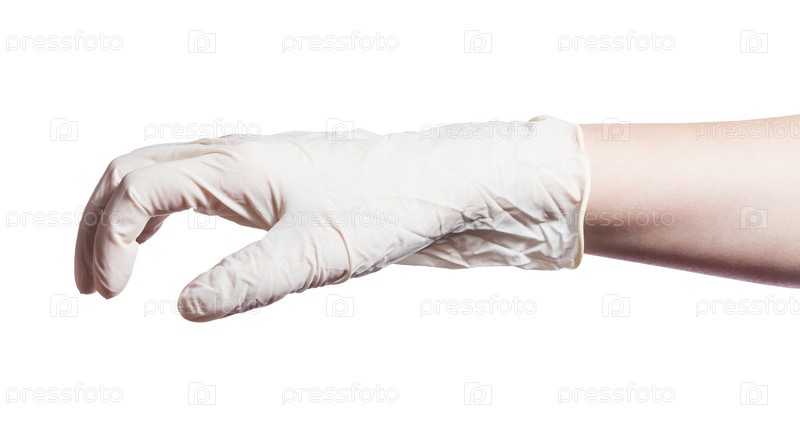 Вид сбоку расслабленной руки в изолированной латексной перчатке
