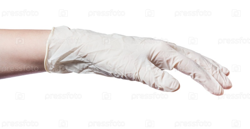 Вид сбоку расслабленной ладони в изолированной латексной перчатке