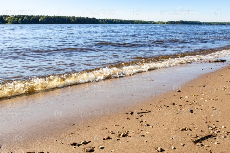 Водный прибой на Волге в солнечный летний день